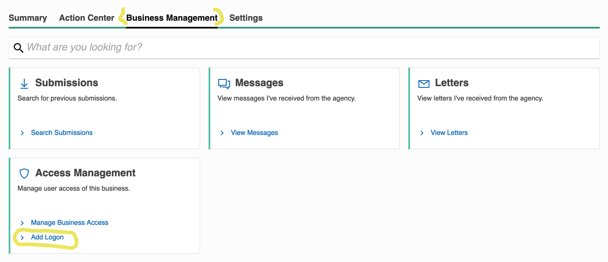 We will need you to create us a Logon from your Dashboard, under the Tab Business Management.